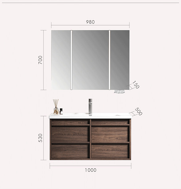 Mirror Cabinet Dimensions | 780*150*750mm | 880*150*750mm | 980*150*750mm |